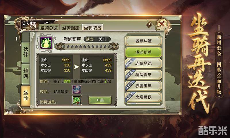 连坐骑图鉴也优化了!本次将近一年的坐骑新增入图鉴收集中,还进行了分类整理的界面优化,更加一目了然。并且新增特殊效果坐骑“匿踪斗篷”“泽润葫芦”,获取方式敬请期待!