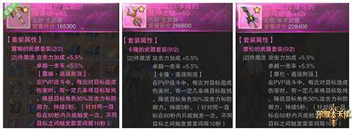 分析:这套装备的BUFF在pvp战斗中,可以辅助团队针对敌方最强输出角色直接进行致命打击,简单来说可提供给团队更好的爆发点杀能力。同时要注意做好团队配合,更好地利用该套装的效果。
