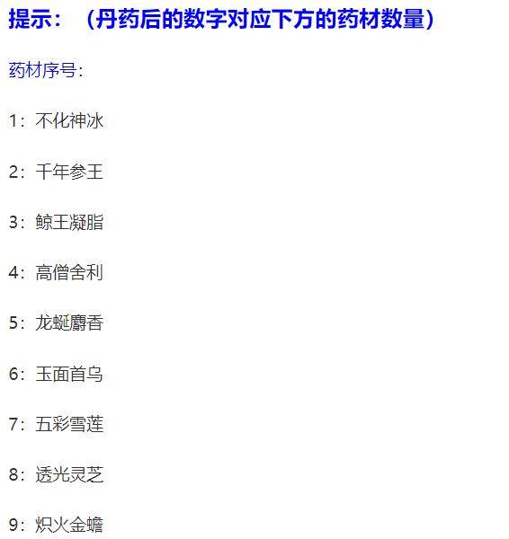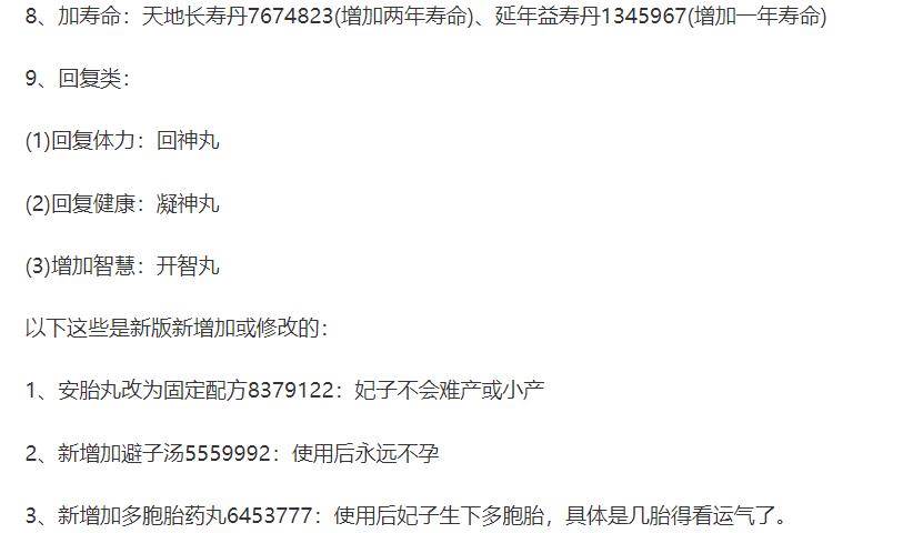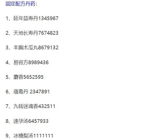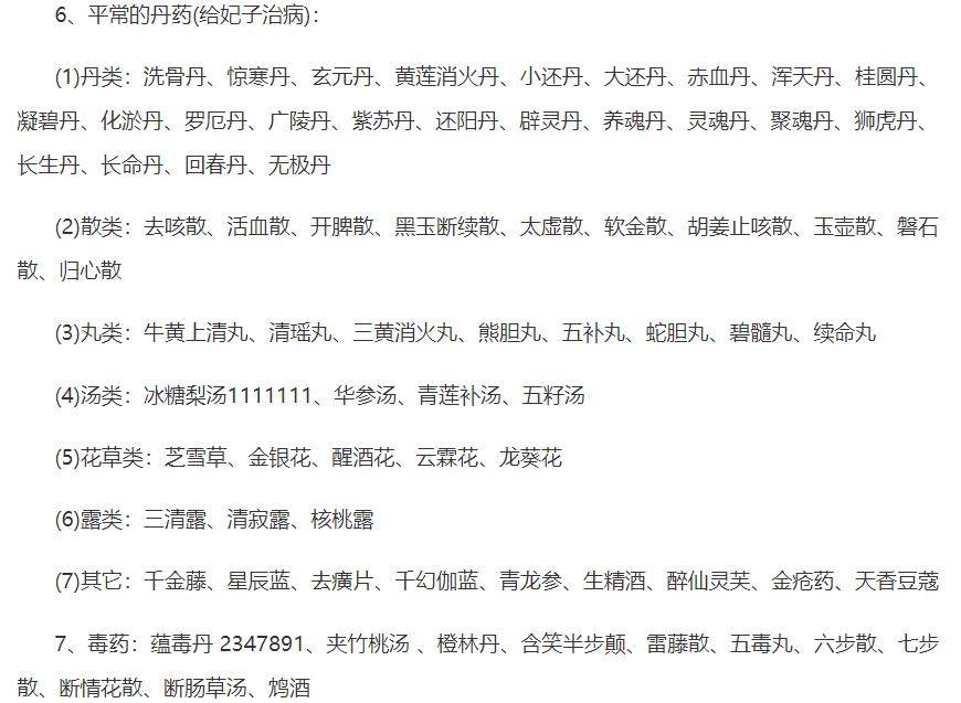 以下是各种关于怀孕生子的药,按照上面编号顺序放置药材就可以炼制出来。
