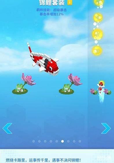 锦鲤套装不仅会增加暴击率,战机和宠物还有自己的专属技能哦~锦鲤跳跳的专属技能自然是和好运有关啦,当它升星到3星时,它就会拥有“锦鲤”这一技能,这个名字可真是够“好运”的,触发这个技能后,在战斗过程中击破敌人就会有几率掉落金币和技能宝箱哦~此外,别看荷蛙花好像是两只呆呆的小青蛙,但当它触发专属技能“花开花落”时,就会每隔15秒召唤荷花,并持续散落花瓣对敌人进行伤害。