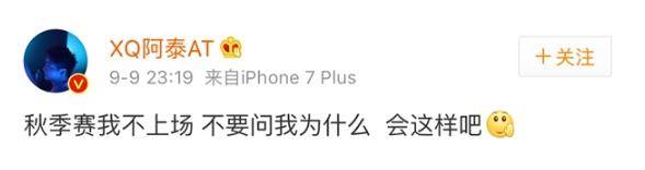 之前AT在微博发声,称自己将在秋季赛中不再上场,这一消息瞬间让万千支持粉丝AT和XQ战队为之揪心。很多粉丝对于AT的现状十分担心,同时更是为没有AT登场的XQ在新赛季的前景捏一把汗。