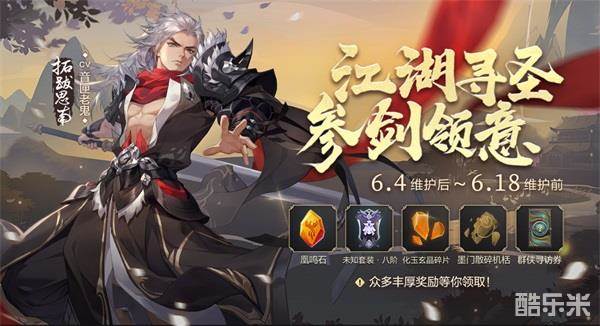 6月11日维护后,全新侠客剑圣【拓跋思南】正式上线!游戏内侠客预热活动【参剑】火爆进行中,参与活动就有好礼相送!Tips:为了让大家接那个男人回家,6月11日维护后别忘了来领随心寻访券十连噢!此外,动态漫·剑圣正在火爆热映中,过往秘事欲揭,记得来看~