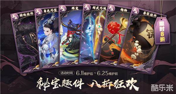 6月11日维护后-6月25日维护前,商城及秘宝阁中的武器、外装、挂件、趣物统统8折优惠!