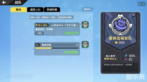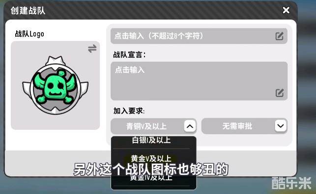 当然创建战队,可以设置logo名字,战队宣言,还有加入的要求限制等。