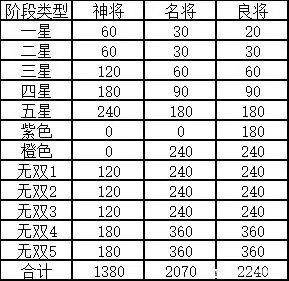 (另外还有无双石头钱,表里没有相关数据就不算进去了)