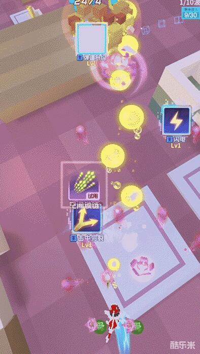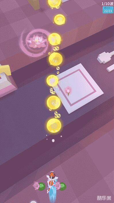 此外荷蛙花自身还具有专属技能花开花落。花开花落是属于定期使用的被动技能,自身有冷却时间的设定,在使用后会以玩家的战机作为中心点,发射出一道持续向前方前进的粉色莲花。粉色莲花会不断向四周发射粉色弹道攻击敌方。