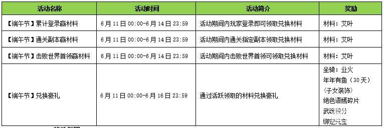 玩家点击主界面右侧“福利”参与【端午节】赢材料活动,累计登录次数、完成副本活动、击败世界BOSS,即可领取材料;通过领取的材料可兑换奖励。