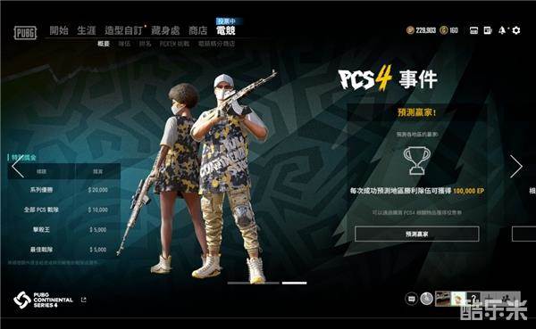 6月2日,正式服“冠军竞猜活动(Pick’em Challenge)”强势回归,现在登入《绝地求生》,预测冠军归属,赢取限定道具。此外,参与“冠军竞猜活动”和系列直播观赛活动,即有机会赢取多种PCS4赛事专属道具、投票券和EP奖励。快来为PCL赛区应援投票吧!