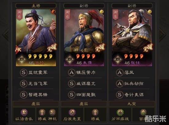奇计良谋+一回合减伤(这个是我比较得意的点,所以带暂避的沮授兵书要学一个神机抢先攻在张任前行动,如果带八门的话就沮授主将,也防箕型,且张任尽量全速)