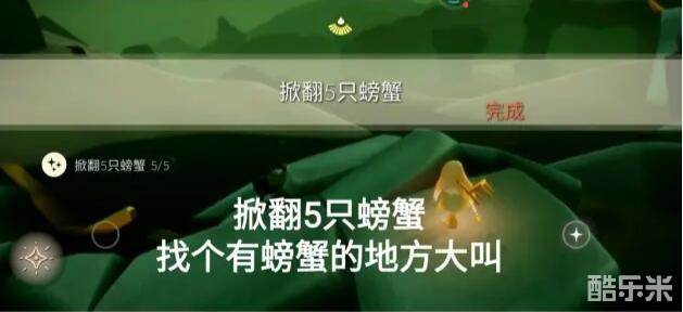 来到有螃蟹的地方对着它们大叫完成掀翻5只螃蟹的任务。
