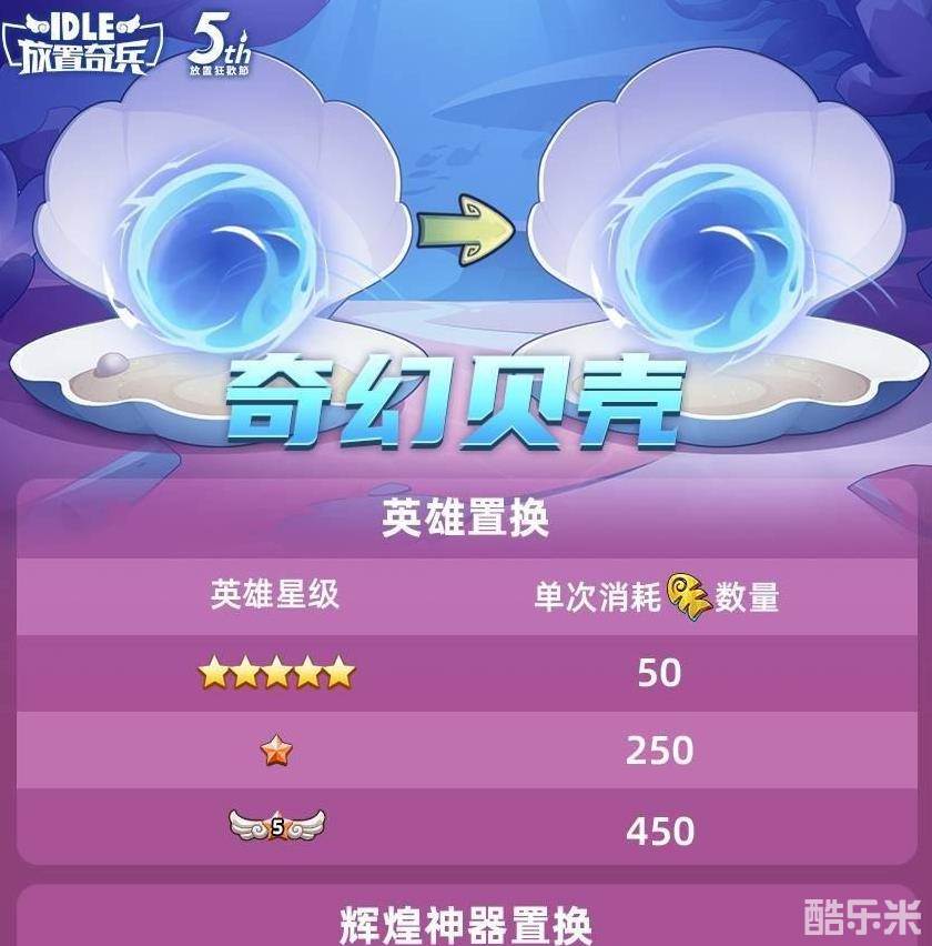 五周年纪念章可用于【奇幻贝壳】活动中,消耗【五周年纪念章】可将背包中的英雄、皮肤或者神器进行自选置换。置换仅限于同类型道具之间,英雄不可置换为安德烈,辉煌神器不可置换为冰雪之心,皮肤不可置换为光耀战魂