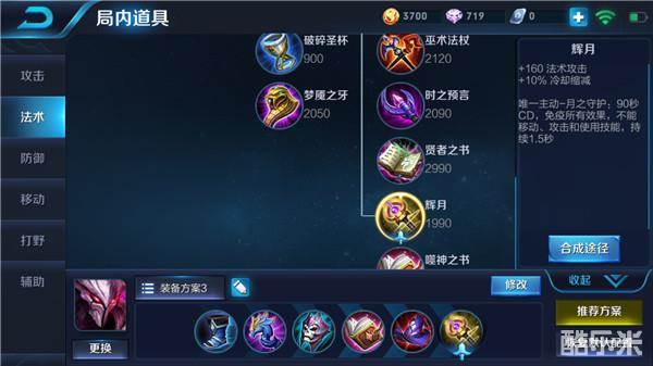 干将莫邪的攻击范围广,召唤师只需要远距离消耗即可,所以我们也为他装备秘法之靴来提升他的输出能力。回响之杖和痛苦面具都能提升干将莫邪的法术强度,而且如果他的技能命中敌人还能触发这两件装备的唯一被动,进而大幅度提升自身的输出能力。其中,回响之杖还提供了高额的移速加成,加强了干将莫邪的灵活性,便于召唤师走位和支援。噬神之书为干将莫邪提供了续航能力,以减少回城次数的方式增加参团率,便于触发他一技能的被动效果从而提升自身的法术强度。博学者之怒是大幅度提升法术强度的利器,能提升干将莫邪的爆发能力。最后一件装备的选择比较广泛,考虑到后期团战的重要性我们推荐召唤师装备辉月,该装备的唯一主动月之守护使得干将莫邪在短时间内能免疫所有效果,能大幅度的提升自身生存能力。如果召唤师认为干将莫邪的输出能力不足,那么召唤师可以选择购买贤者之书,该装备能大幅度提升他的法术强度,从而提升他的爆发能力,便于消耗敌人。