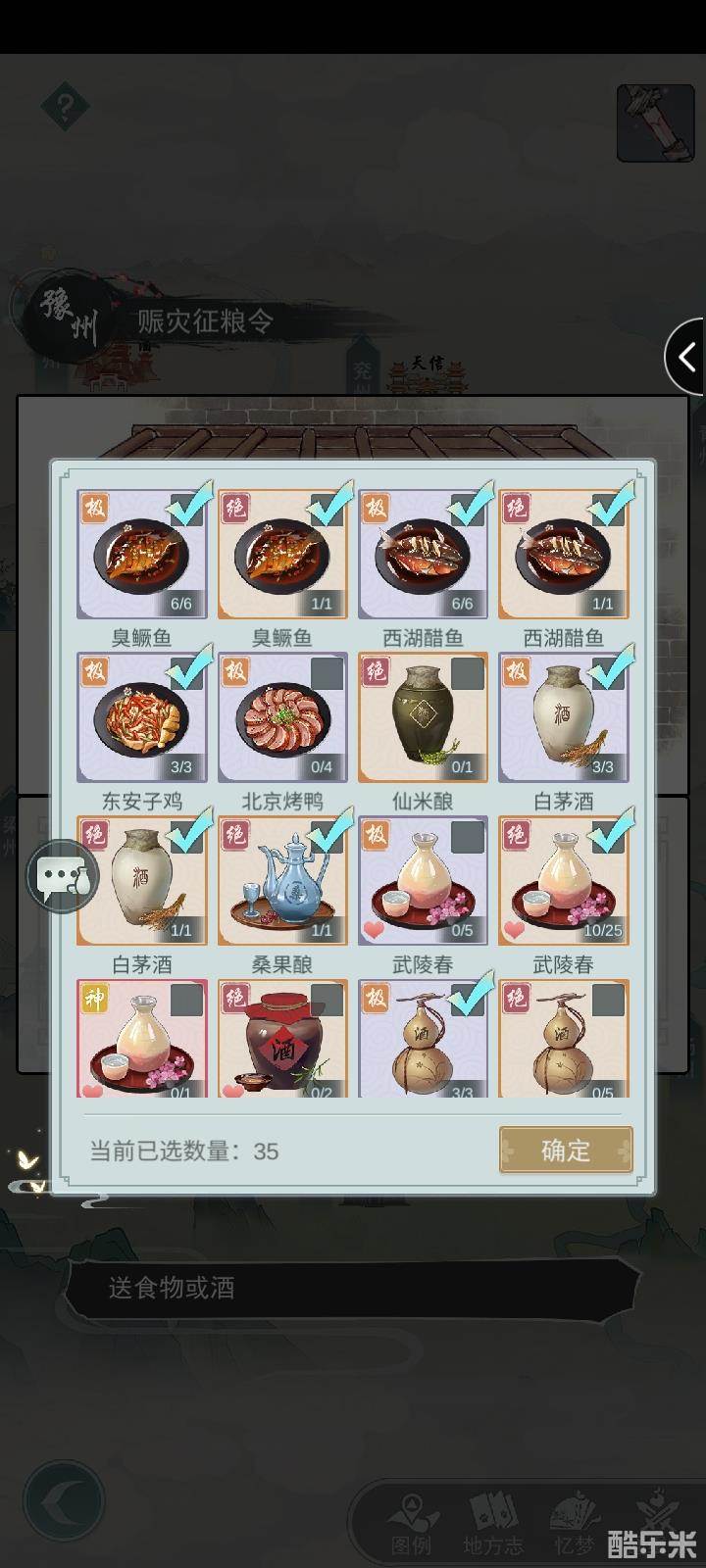 赈灾的中玩家们可以提供任意数量的酒酿和菜品,对物品的品质也没有限制,但在玩家们确认赈灾赠与物资后就会给玩家们提供相应的奖励。