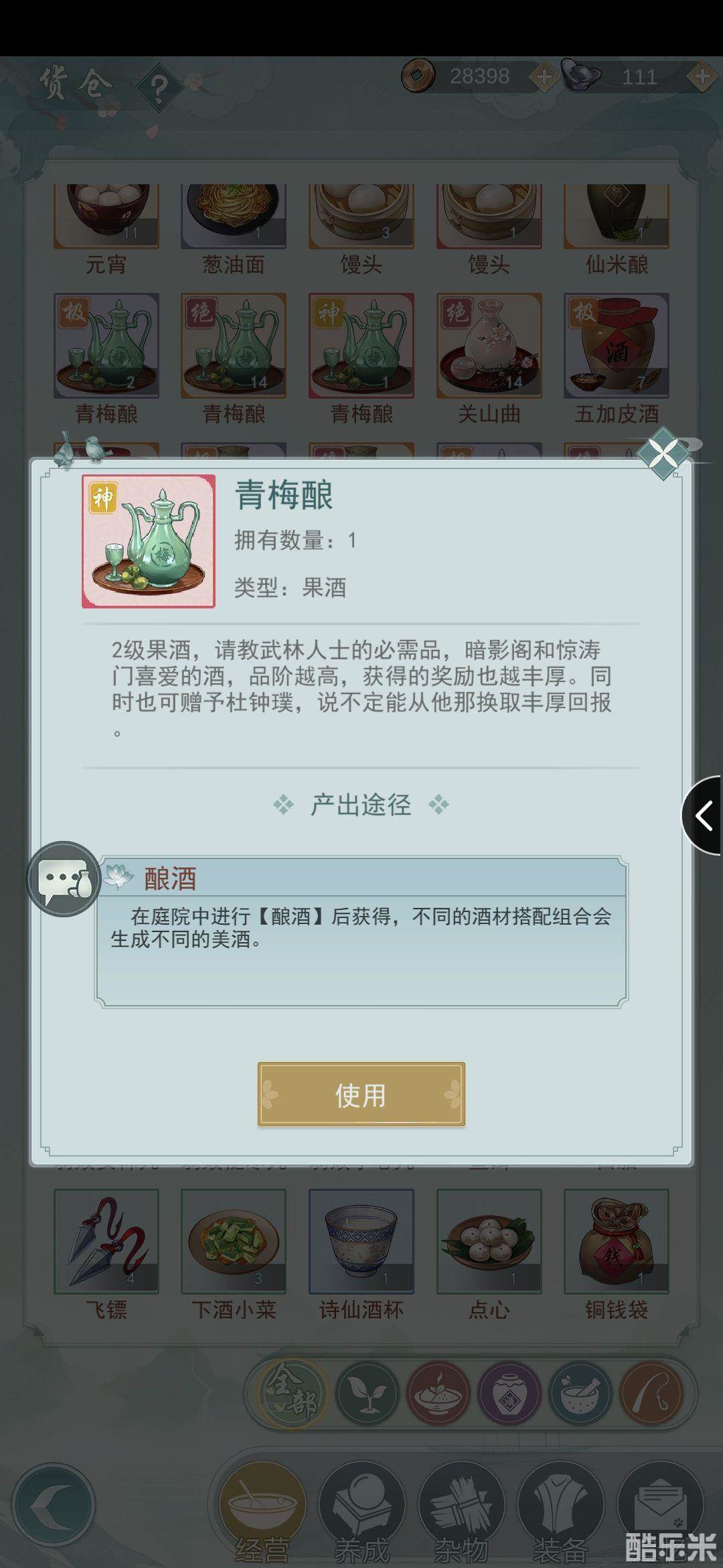 在年夜饭期间,玩家们可以选择使用自己的酒酿和菜品来作为年夜饭的一部分,根据玩家们提供的物品品质来决定年夜饭结束后玩家们收到的贡献值。