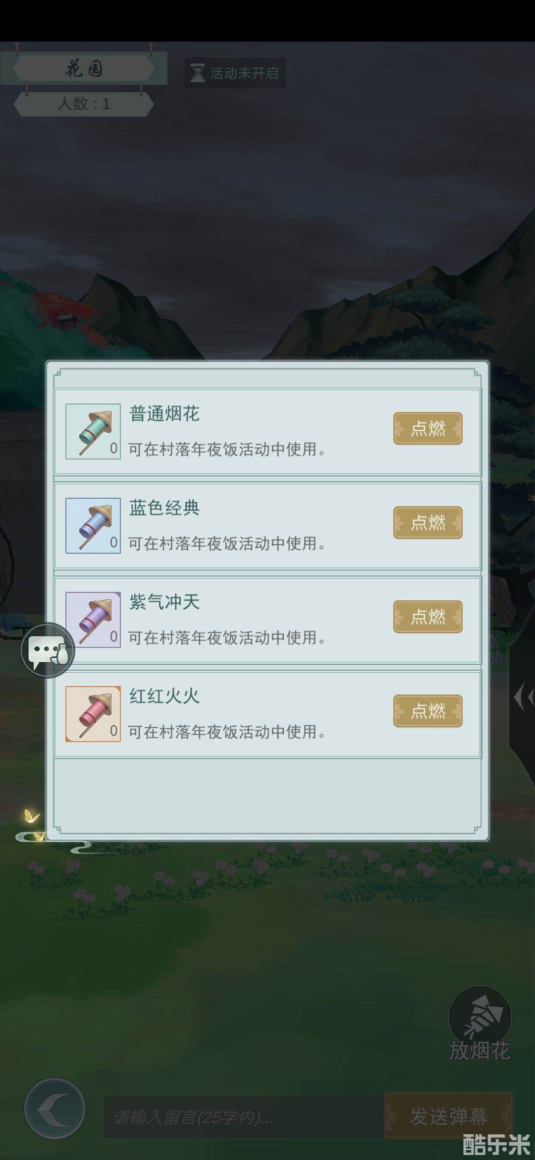 在年夜饭期间还可以给村庄好友放烟花,不同等级的烟花需要玩家们掏出几千到上万不等的铜钱,玩家们还可以使用银两充值发放红包。但目前发红包和高级烟花没有特殊奖励,建议玩家们根据自身物资储备情况酌情选择。