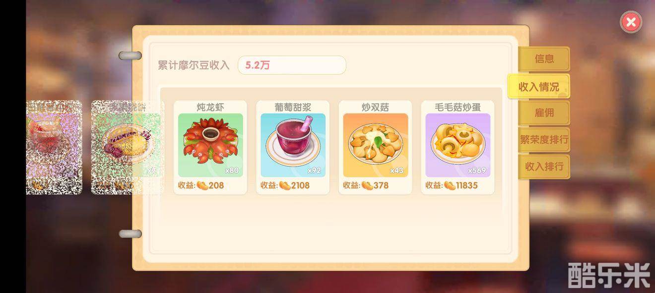 毛毛菇炒蛋作为之前餐厅收益未砍的情况下就是高收益产品,在餐厅加速收益删除后是目前最赚的料理了,在卖出了350份的毛毛菇炒蛋获取了一万二左右的摩尔豆。