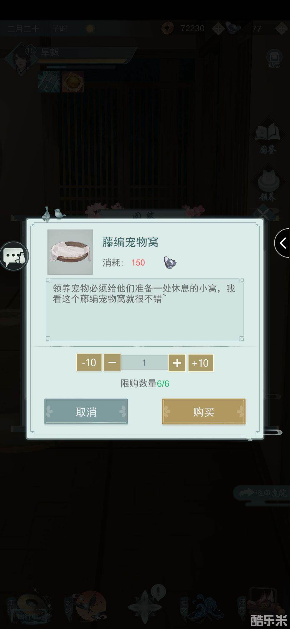 要领养宠物需要先买个一个窝,因此零氪玩家想养宠物是不实际的,宠物寻宝是一天两次机会,与宠物数量无关,
