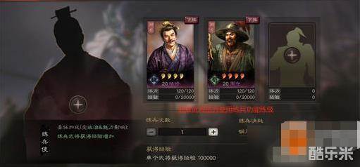 这是主公在后期练新武将等级的最佳方法,演武场的等级越高获得的经验就越多(委任练兵使也可以额外获得经验加成)。