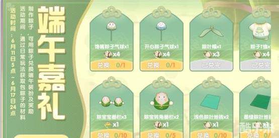 如果想要兑换完全部的道具需要【红豆粽】*22,【白米粽】*27,【玲珑冰皮粽】*11,累计60个粽子。