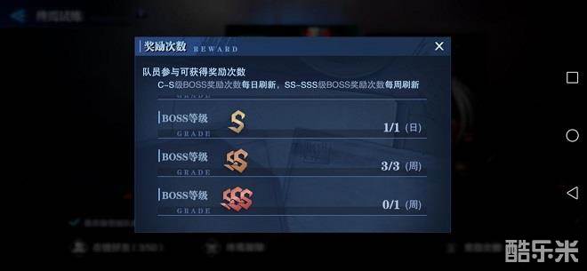 再就是我们的试炼,这个也是运气成分,BOSS奖励分c-s,ss-sss,所以途径还是多样的。