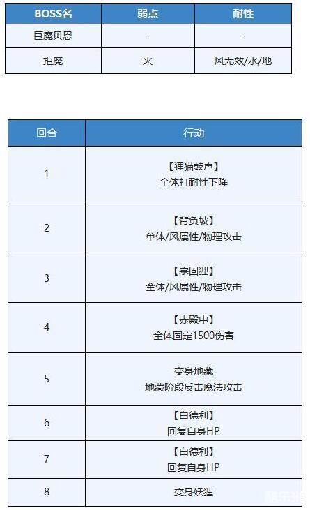 2、每四回合BOSS会变成地藏并恢复自身HP,地藏阶段会反击魔法攻击(异界之力期间不会反击,结束后结算),所以建议以火系物理队伍为主。