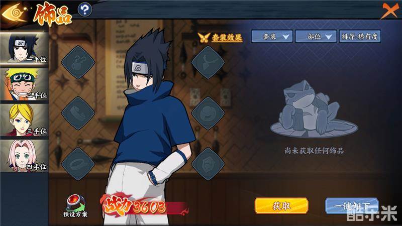 针对单个忍者支持保存饰品装配方案,快速换装。
