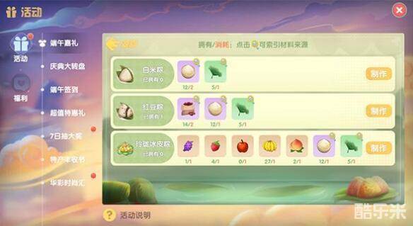 参与最近的端午活动,通过这次的端午嘉礼兑换,需要制作三种粽子,然后在活动界面中找到【端午嘉礼】,往后翻就能够找到龙舟的兑换了。