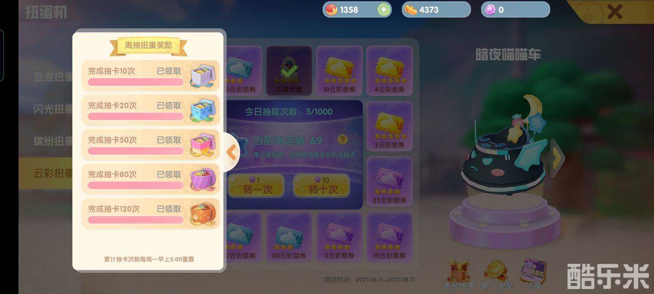 金券的概率在云彩扭蛋中是没有保底机制的,因此玩家们即使抽满200抽也没有足够的金券,不能随意兑换云彩商店内的物品。