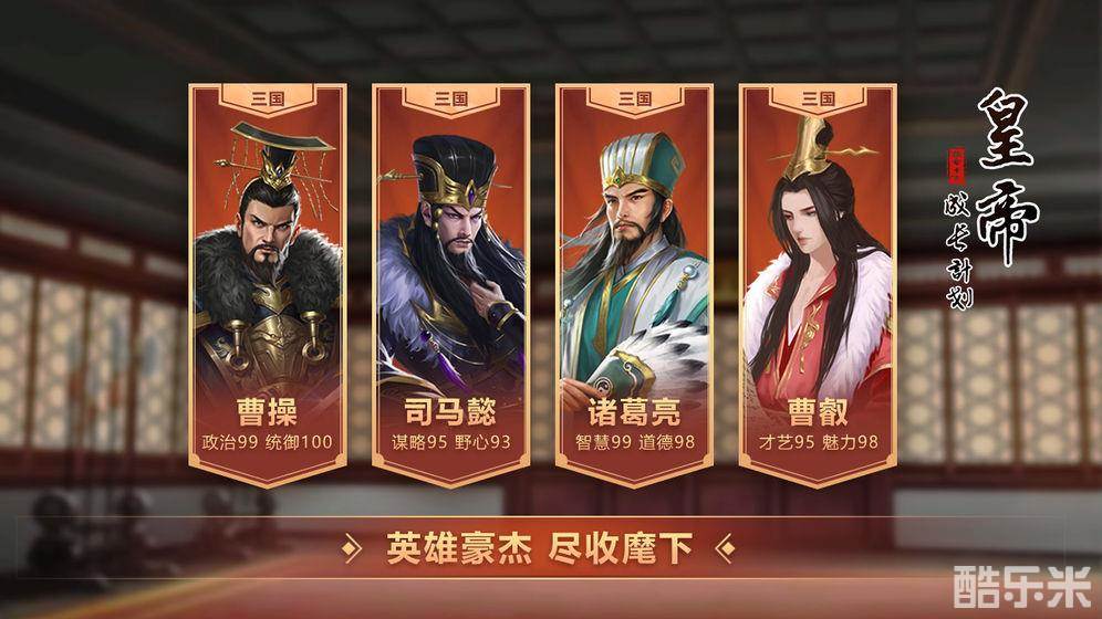 皇帝成长计划是一款模拟养成类的休闲娱乐游戏,玩家可以扮演不同朝代的天子,治理国家,收服名臣。西楚霸王,蜀汉名将,诸葛亮,包青天,哪一个才是你的良臣,不同的皇帝剧本感受不同朝代的历史,体验不同的天子之旅。