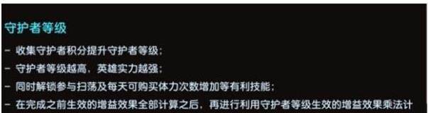 答: 守护者等级需要积分,而积分需要点击守护者基地界面右下角的领取(积累1分钟以上时间才可领取,可累积长时间后一次性领取),然后点击左下方的守护者等级,只要满足升级所需经验,新界面里的升级按钮会亮(每点一次升1级)。