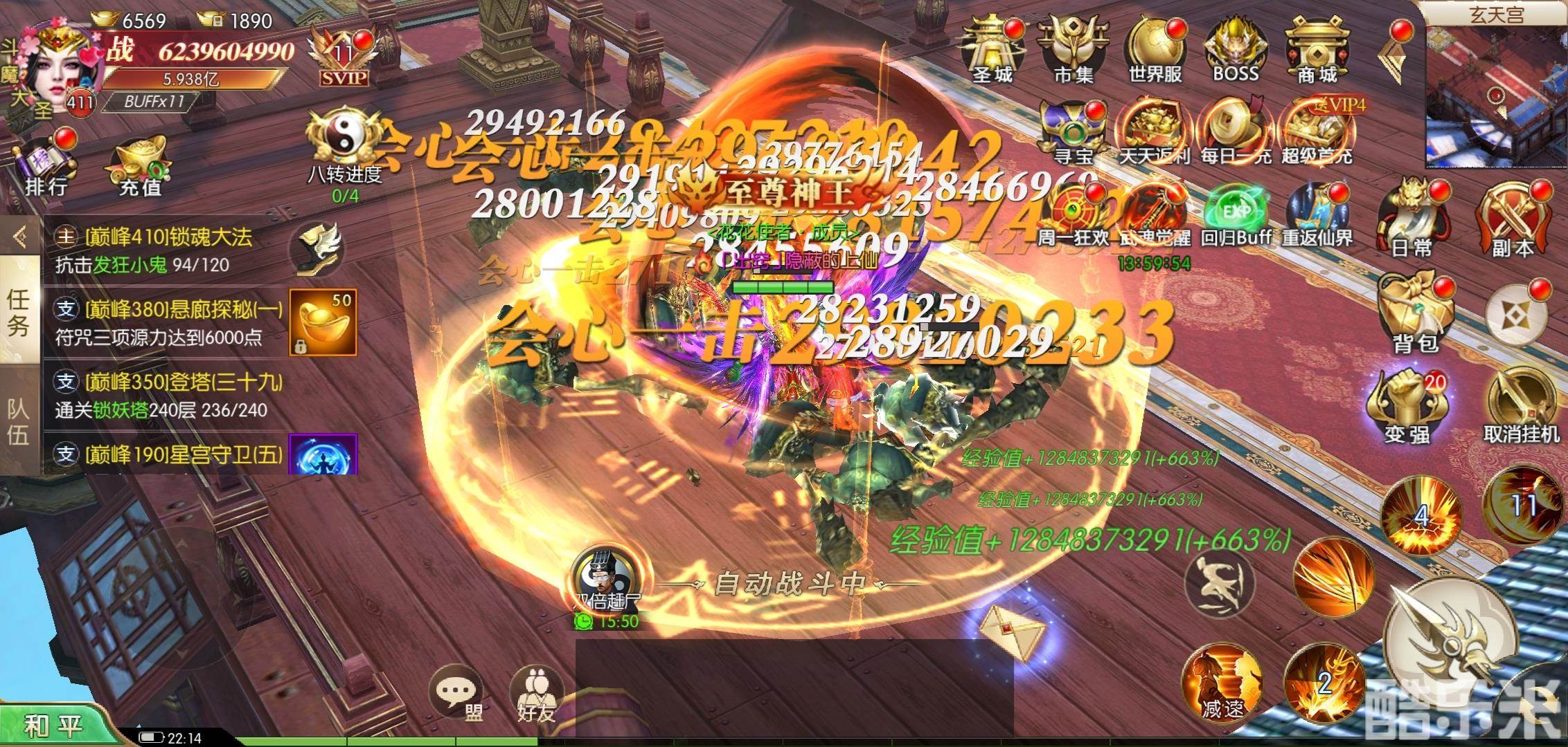单日累计5000元礼包:红色心法礼包Ⅰ(任选)*2、麒麟战纹*10、高级珍宝精华Ⅰ*30、仙界钥匙 *80 、炼化石*1000