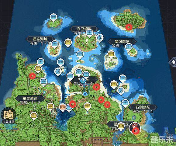 遗忘之岛内的宝箱具体地点如图,其中既有在地下的宝箱,也有在空中或者地面的宝箱,大家在到达相应地点后没有看到空中和地面有宝箱就可以直接向下挖了。