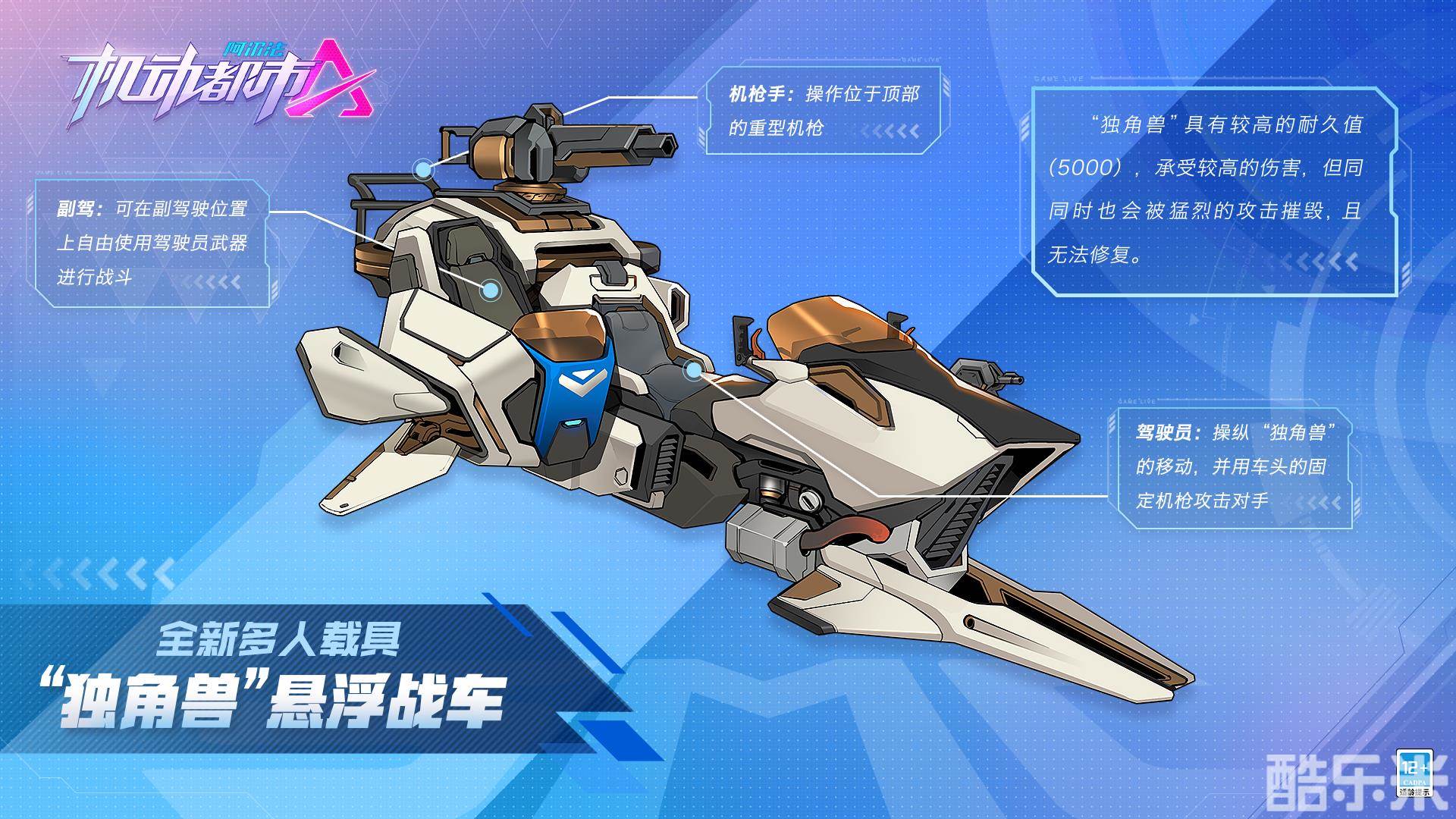 机动都市的首台多人载具“独角兽”悬浮战车今日正式上线。白色的车身颜色未来感十足,独有的重机枪操作台火力迅猛,悬浮移动的黑科技,不受地形的阻碍,带你轻松穿过枪林弹雨。