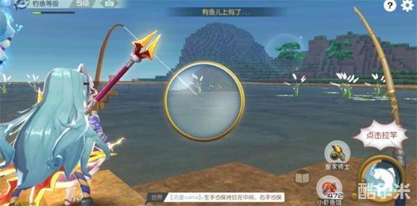 高级鱼出没会有绿色的条,同理向后拉,这时按住提示的地方(右边),如果变红就放手一会(右手,左手别停),变黄就长按一会