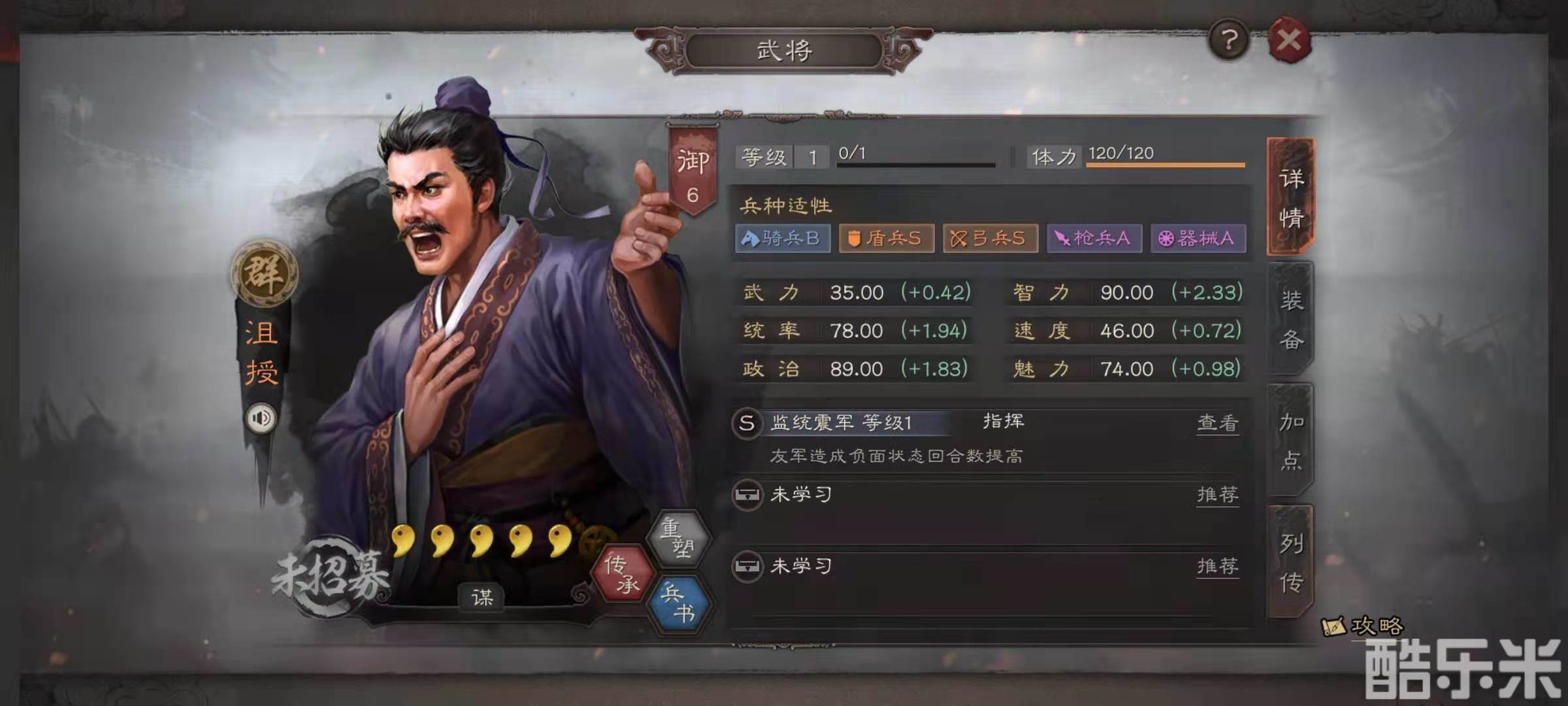 阵容中的另一名武将一般选择的是沮授,沮授的智力很高,自带的战法监统震军效果是当友军造成负面状态的时候,可以增加负面状态的持续时间,还能造成谋略伤害,如果敌方没有负面状态。沮授还可以转化为回血能力。沮授的这个技能对袁绍的加成很大,进一步提高了灼烧造成的伤害。