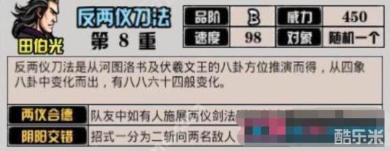 两仪合德:队友中如有人施展两仪简繁则刀剑合并威力大增。