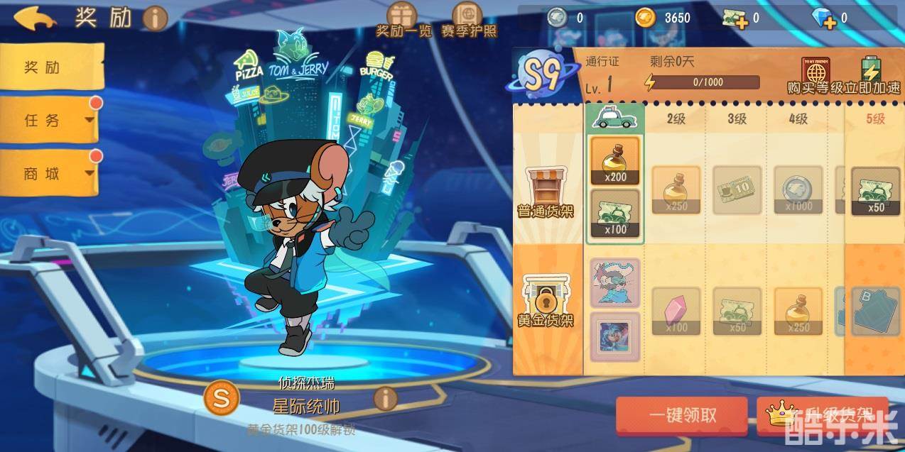 25级获得“星际巡航头像框”,30级获得A级“侦探泰菲·星际研究院”,100级获得S级“侦探杰瑞·星际统帅”。以上的S9赛季的头像和皮肤为本次未来科技系列纪念款,小伙伴们可千万不要错过!