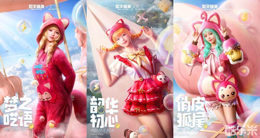 《和平精英》×阿狸主题服饰,包括“俏皮狐尾”、“韶华初心”和“梦之呓语”,