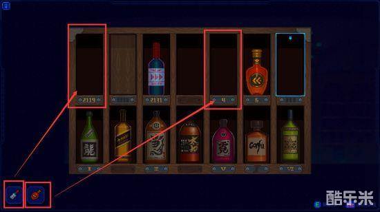 然后来到房间最左边的酒柜,交互触发小游戏。把两瓶酒分别放入下图对应的位置中。