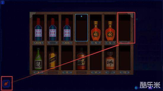 然后钟表右边的柜子上会再出现一瓶酒,拿上回到最左边的酒柜。