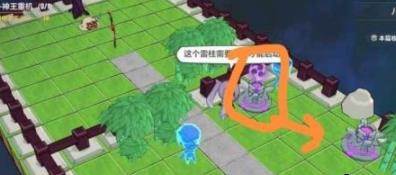 点npc旁边的柱子,让角色染上雷元素,然后点那个右面的柱子,石头就开了,走进去就好了。