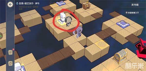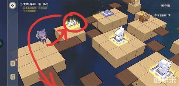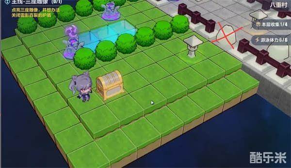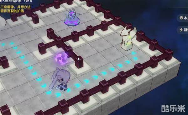 第二第三座神像我们用图中的雷元素即可挨个点亮,路上的石头可以点路灯切换位置。三座神像全部点亮后,图中小人面前的三块石头会消失,宝箱也可以拿到了。月轮会在后面出现,和她旁边的充电桩互动即可解除她身上的护盾,到此本层的剧情就走完了。