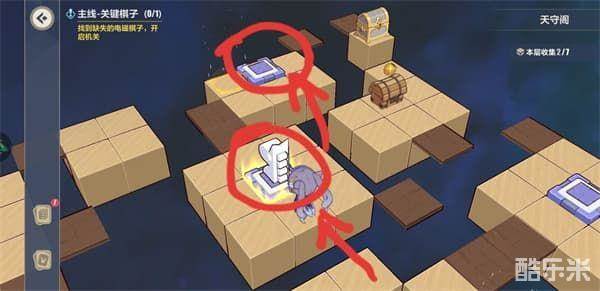 从丽塔打开的路过来,点一下这个棋子,然后继续前进点插座交互,不匹配之前捡到的棋子,但好像找到了第一层宝库的钥匙,等会再去看看吧,从旁边的传送阵离开。