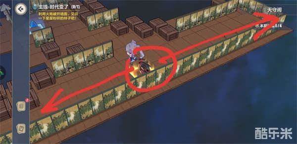 从小人站的这个位置把雷元素带在身上,我们往地图右边走。