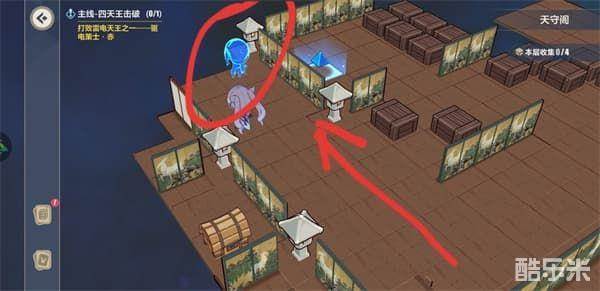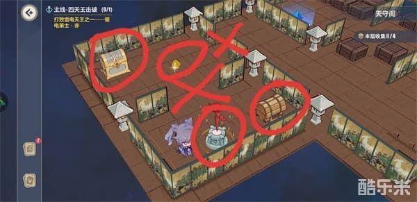 推开红叉处的纸门,拿两个宝箱和树莓,还有地脉迷宫的入口,先等右边探索完再回来吧。