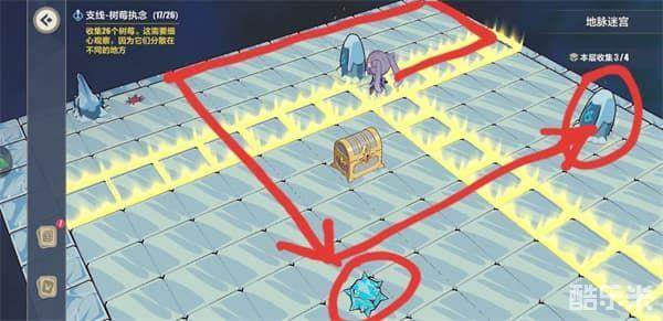 召冰球,回到最左侧,按图示路径拿到宝箱,完成任务。