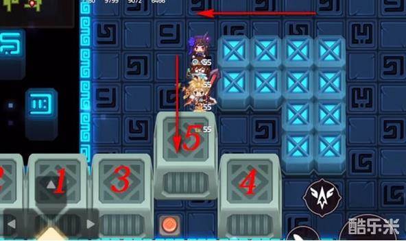 然后绕到上方,将5号箱子推开,推动4号箱子,注意只要推动一半,留下通过的路;