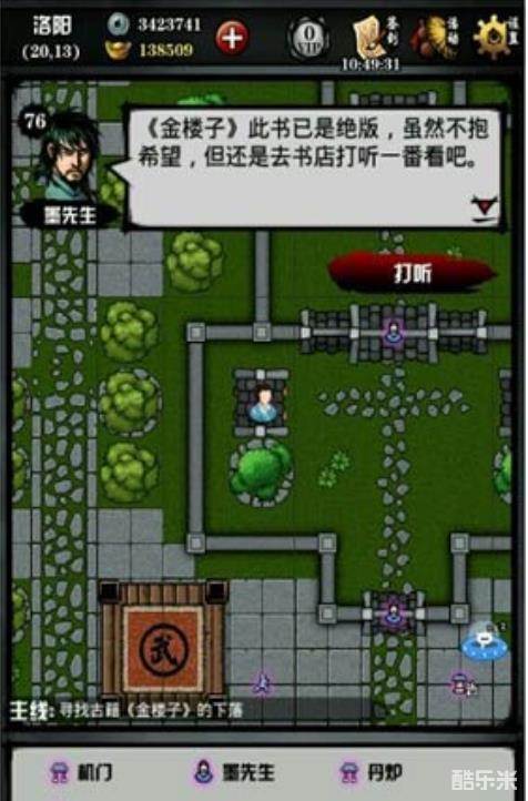 不着急,直接到府衙后院的书房(16,5)搜索,获得金楼子,之后回去找墨先生就行了。
