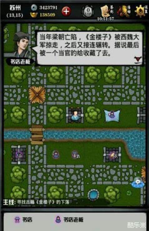 首先前往苏州,找到苏州书店老板(13,15),打听金楼子,书店老板告知书籍被一个当官的收藏了起来。