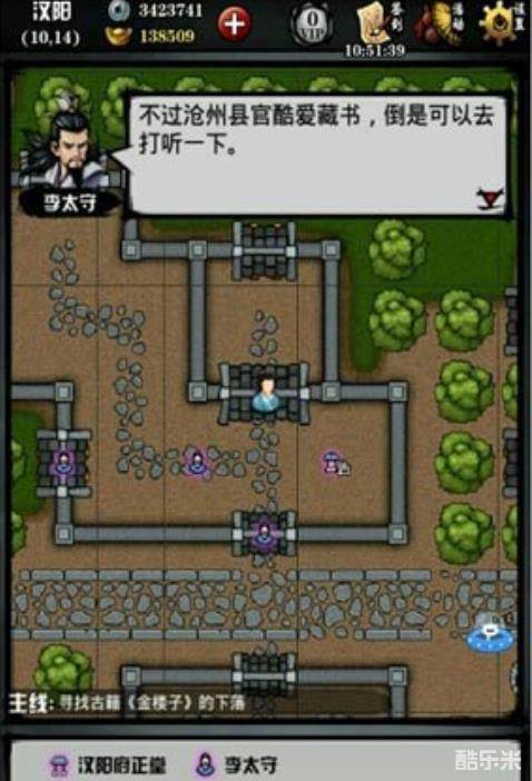 接下来前往沧州,找到沧州县太爷(17,6),打听金楼子,对方抵赖。